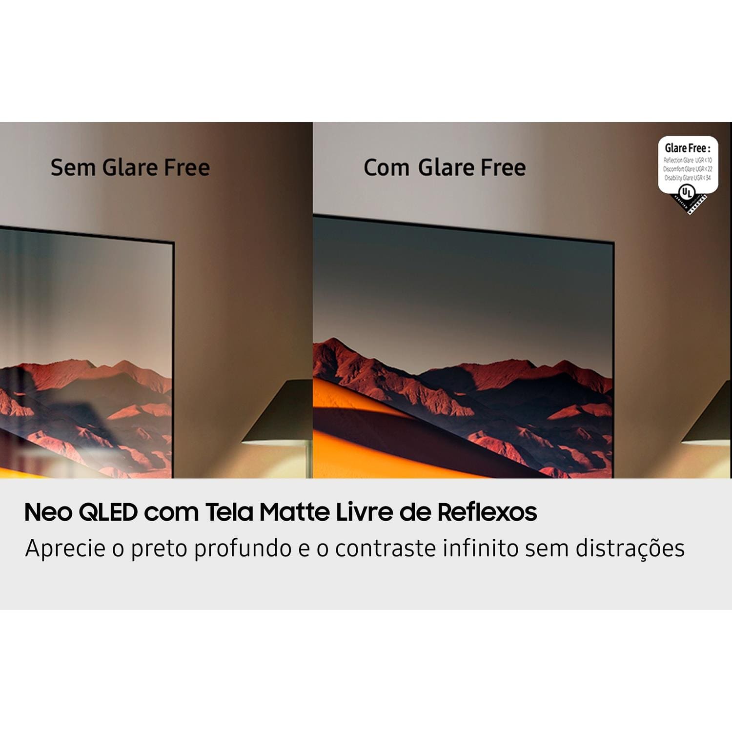 O painel Mini LED com Tela Matte antirreflexo garante cores vibrantes e contraste profundo, mesmo em ambientes iluminados. Graças ao Neo Quantum HDR 8K Pro e à Tecnologia Quantum Matrix Pro, cada cena ganha vida com brilho, nitidez e riqueza de detalhes. O Upscaling em 8K com IA aprimora conteúdos de qualquer resolução para o padrão 8K.
