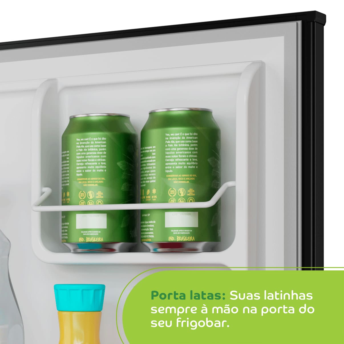 Seu interior conta com prateleira removível, porta garrafas flexível e porta-latas, oferecendo organização e segurança para armazenar desde pequenos alimentos até garrafas grandes. O compartimento extra frio é ideal para bebidas que precisam estar trincando.