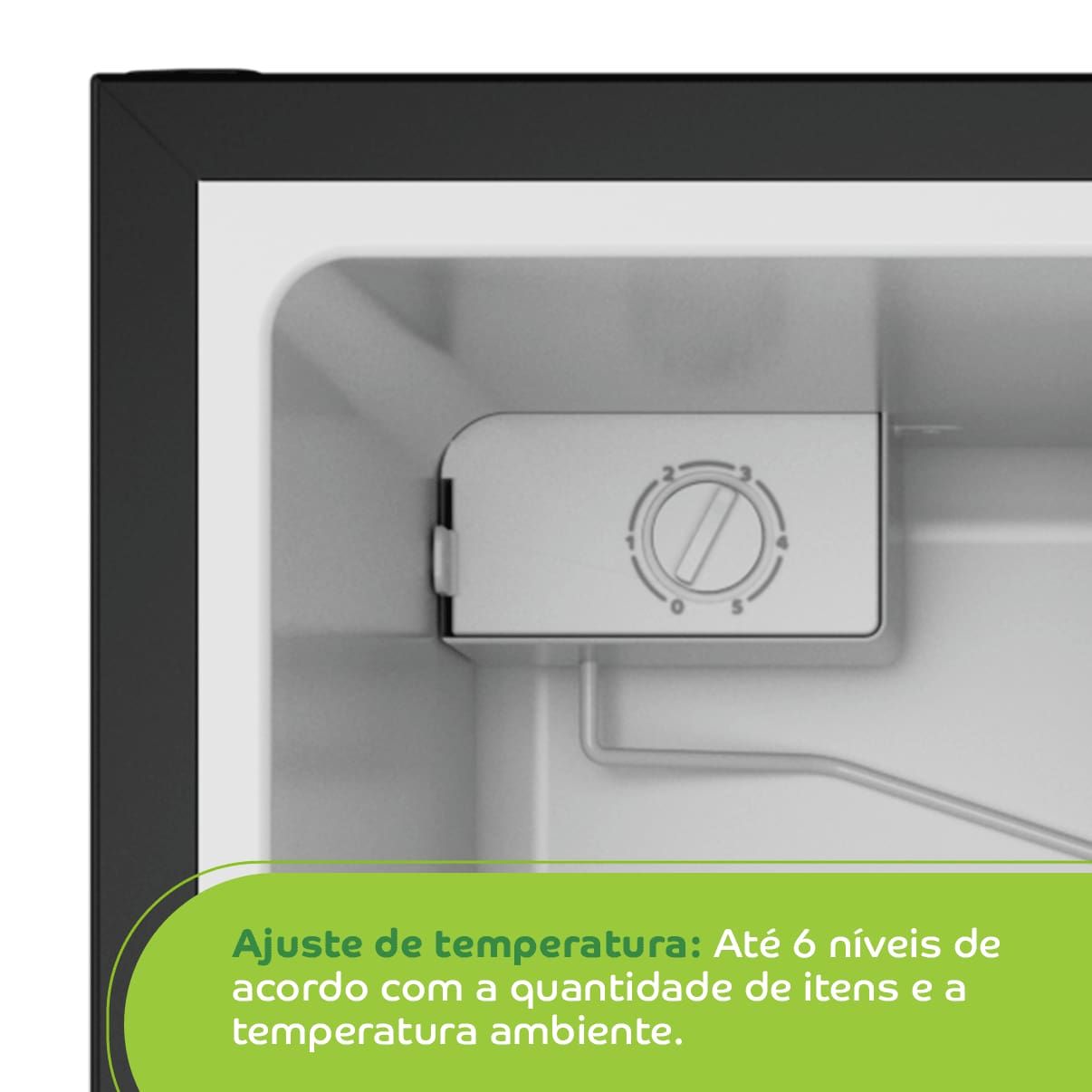 Com controle de temperatura ajustável em até 6 níveis, você pode adaptar o resfriamento conforme a quantidade de itens e a temperatura ambiente. O gás ecológico R600 garante que o produto seja sustentável, sem agredir a camada de ozônio.