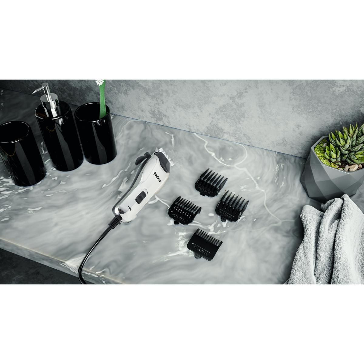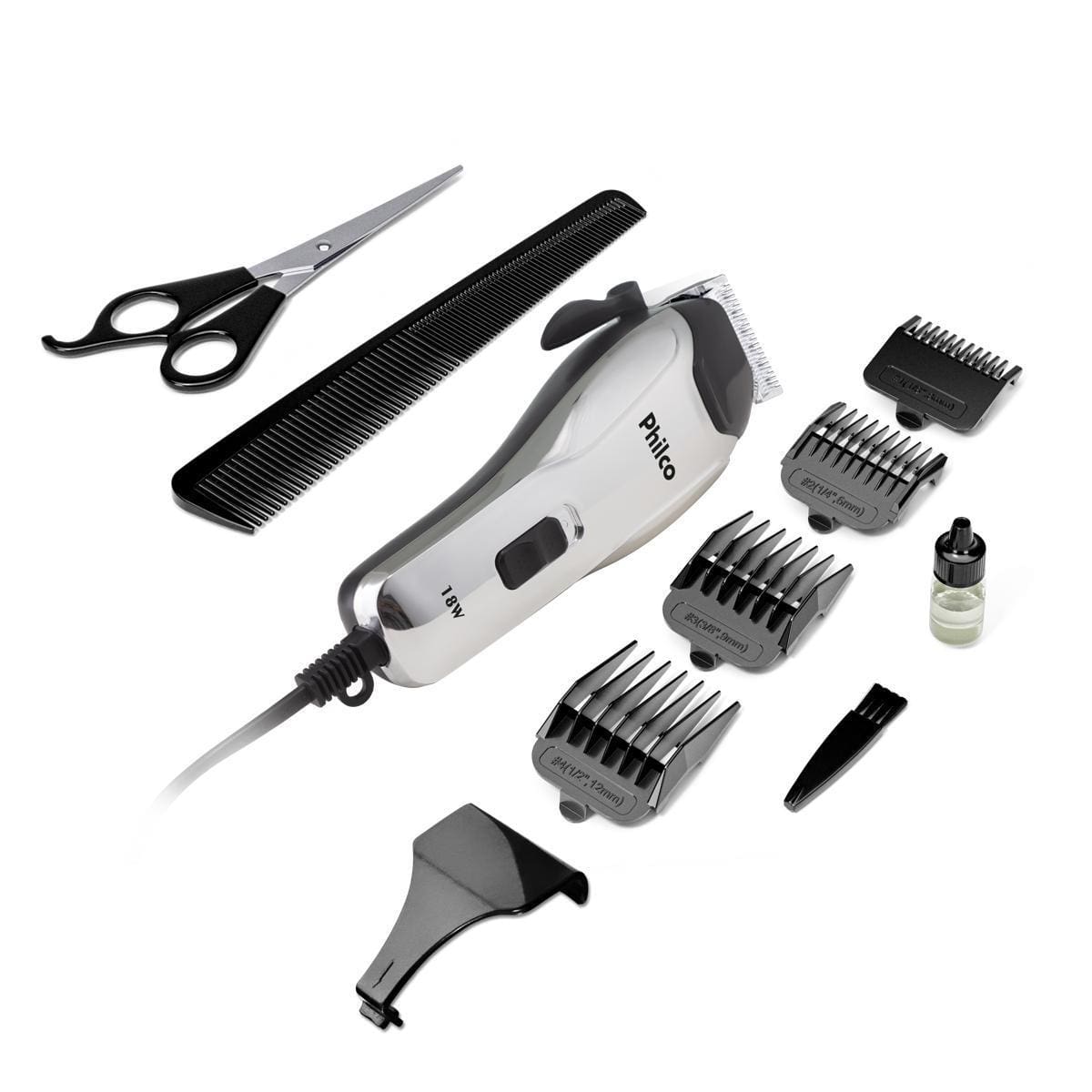 Máquina de Cortar Cabelo Philco PCR04 18W 4 Pentes Cerâmica Preto e Cromado