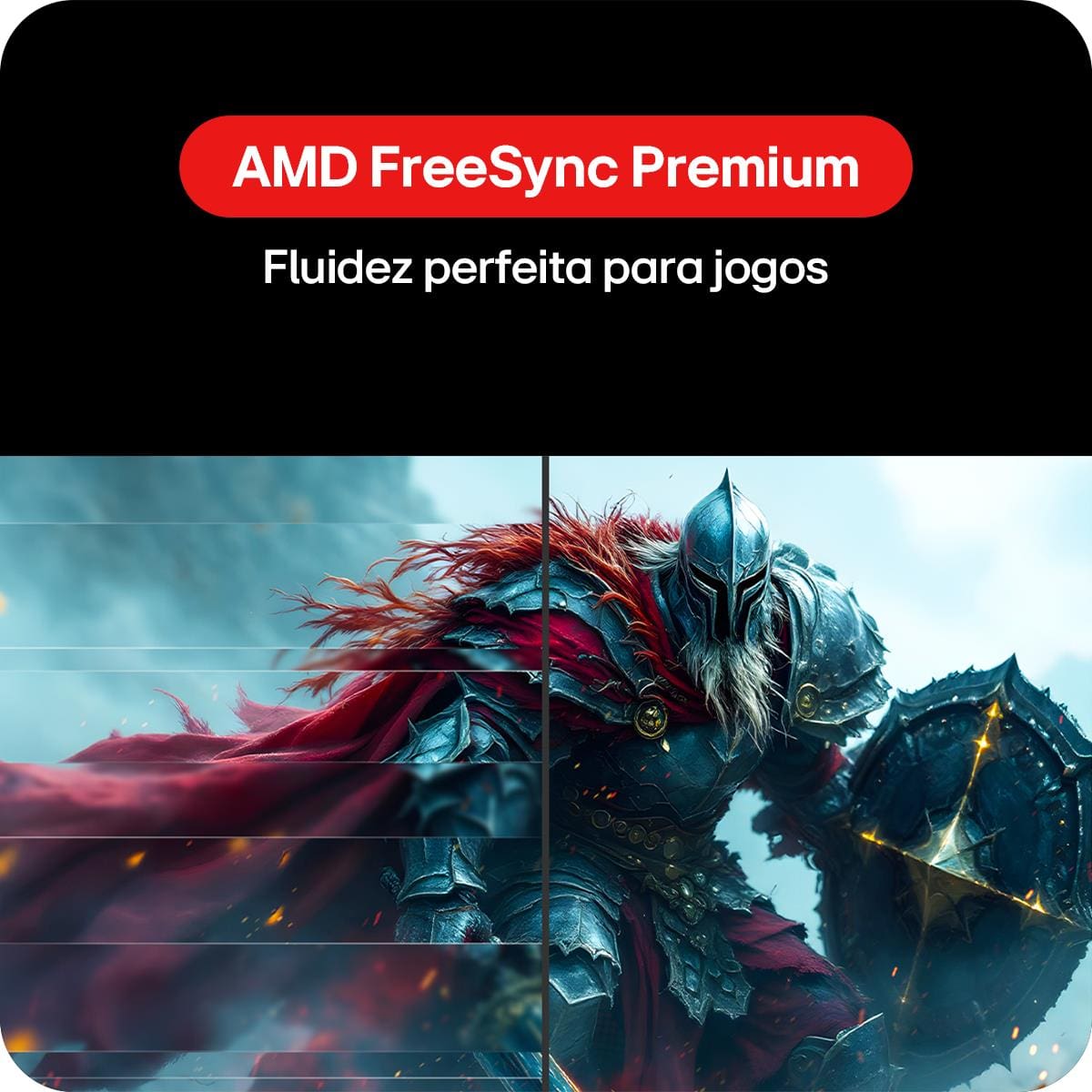 Compatível com AMD FreeSync™ Premium e Dynamic Action Sync, o monitor reduz tearing e stuttering, garantindo jogabilidade contínua e responsiva em cenas rápidas.