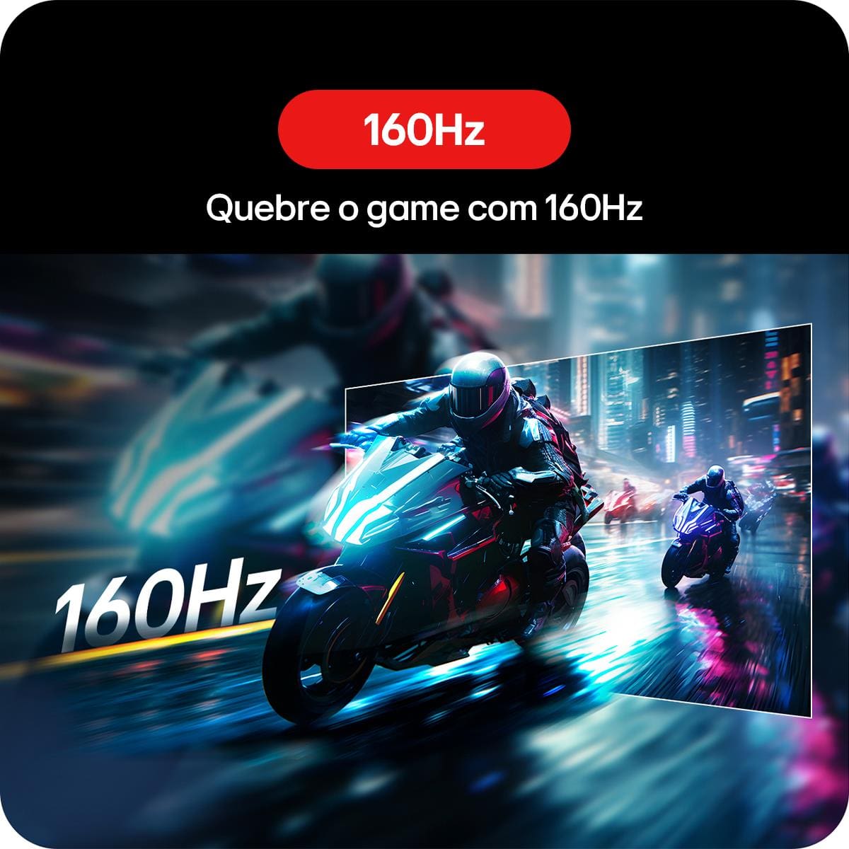A performance é garantida pela taxa de atualização de 160Hz e pelo tempo de resposta de 1ms (MBR), entregando movimentos suaves, precisos e sem rastros, ideais para jogos de ritmo acelerado.